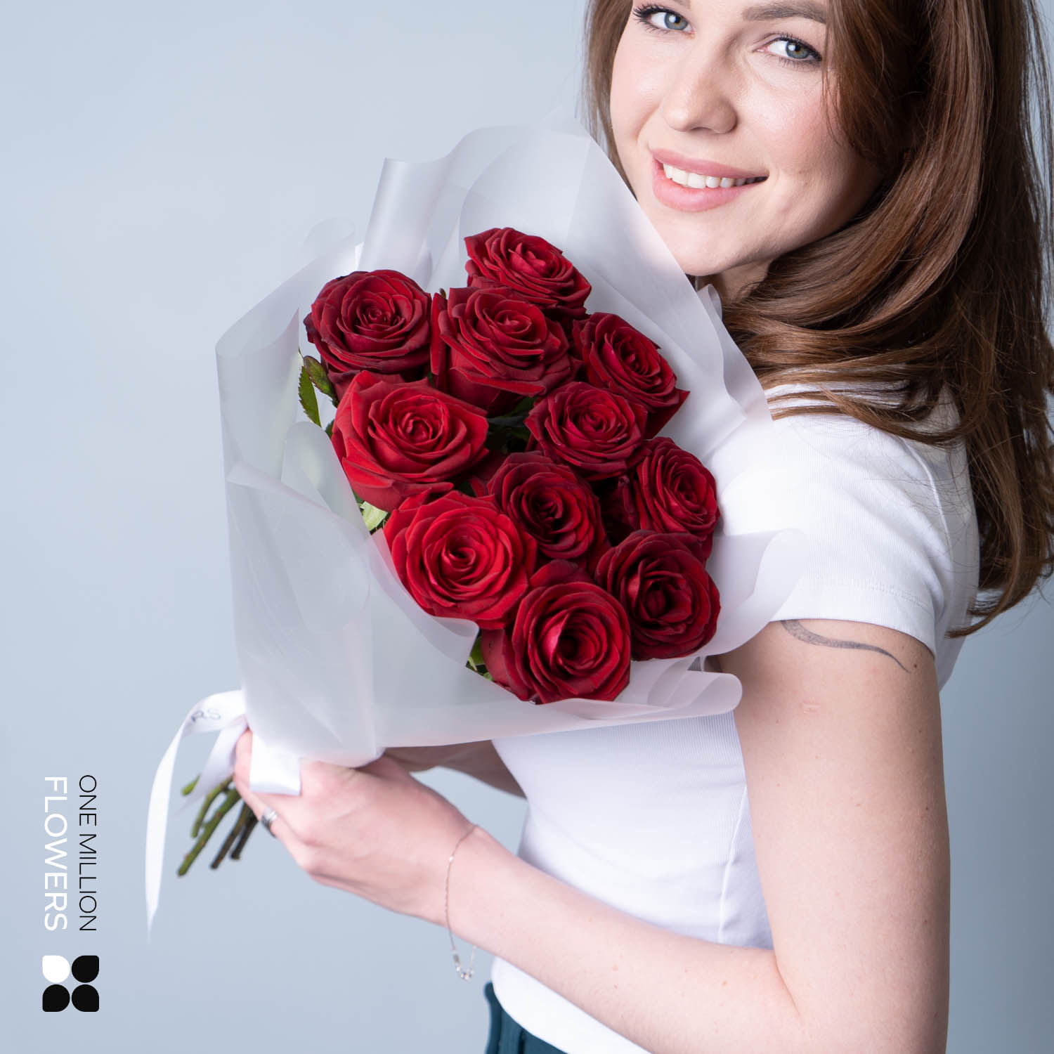 "Букет из 11 "Рэд Наоми" White 50 см представляет собой элегантную композицию из 11 великолепных красных роз с высотой стебля 50 см. Этот букет наполнен нежностью и страстью, идеально подходит для торжественных случаев и особых моментов.