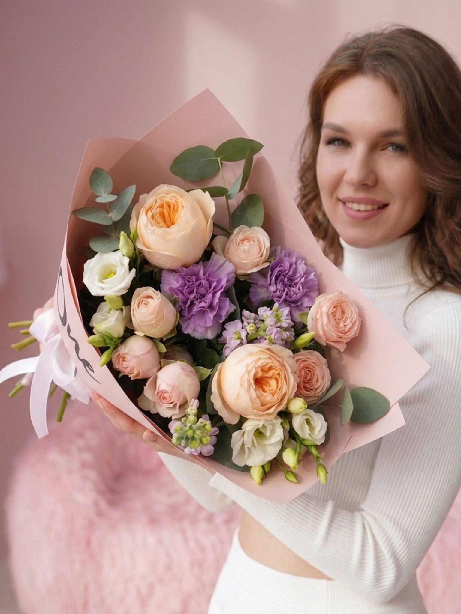 Букет "Уно Ремо" наполнен великолепием и изяществом. В его состав входят 1 пионовидная роза Девид Остин Джульетта, 2 маттиолы сиреневого цвета, 3 кустовые розы Бомбастик Кремовый (нежно), 2 эвкалипта и 2 эустомы белого цвета. Эти цветы не просто создают гармоничную палитру, но и обладают своим символизмом: пионы олицетворяют счастье и новый старт, в то время как маттиолы являются символом любви и верности. Нежные цветовые сочетания и богатый аромат создают атмосферу, которая наполнит любое пространство теплом и радостью. Порой, погружаясь в эту цветочную симфонию, невольно представляется уютный вечер, когда любимый человек неожиданно проявляет чувства, даря такой волшебный букет.Кому и По Какому Поводу Подходит Этот Букет?