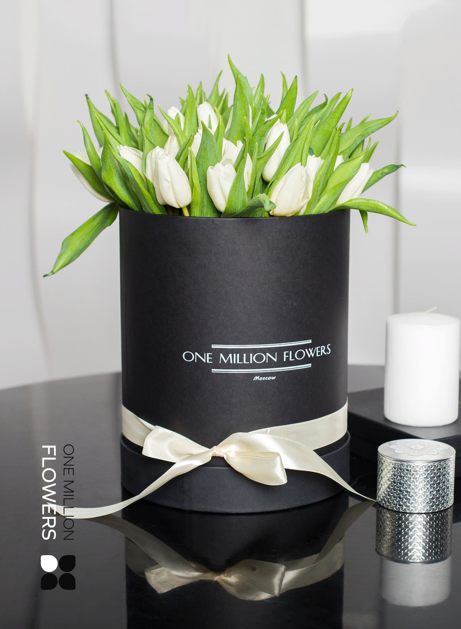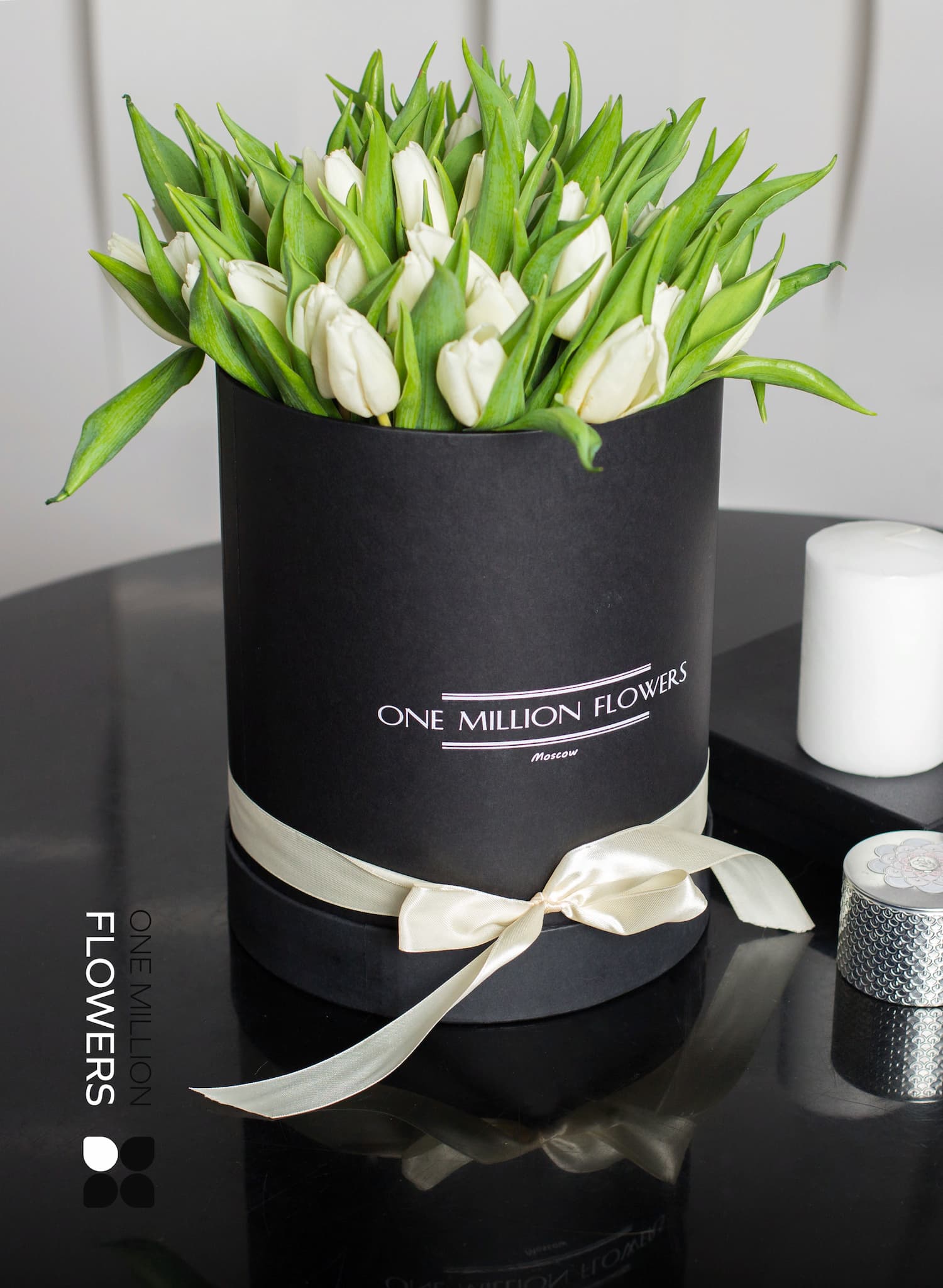 В данной коробке вы можете разместить не только яркие букеты, но и выбрать простые и элегантные композиции. Например, кроме шикарных белых тюльпанов, в коробке уместится и множество других цветов. Размеры коробки "Арктик" Black позволяют украсить её разнообразными элементами, такими как ленточки или декоративные детали, что сделает ваш подарок ещё более привлекательным.