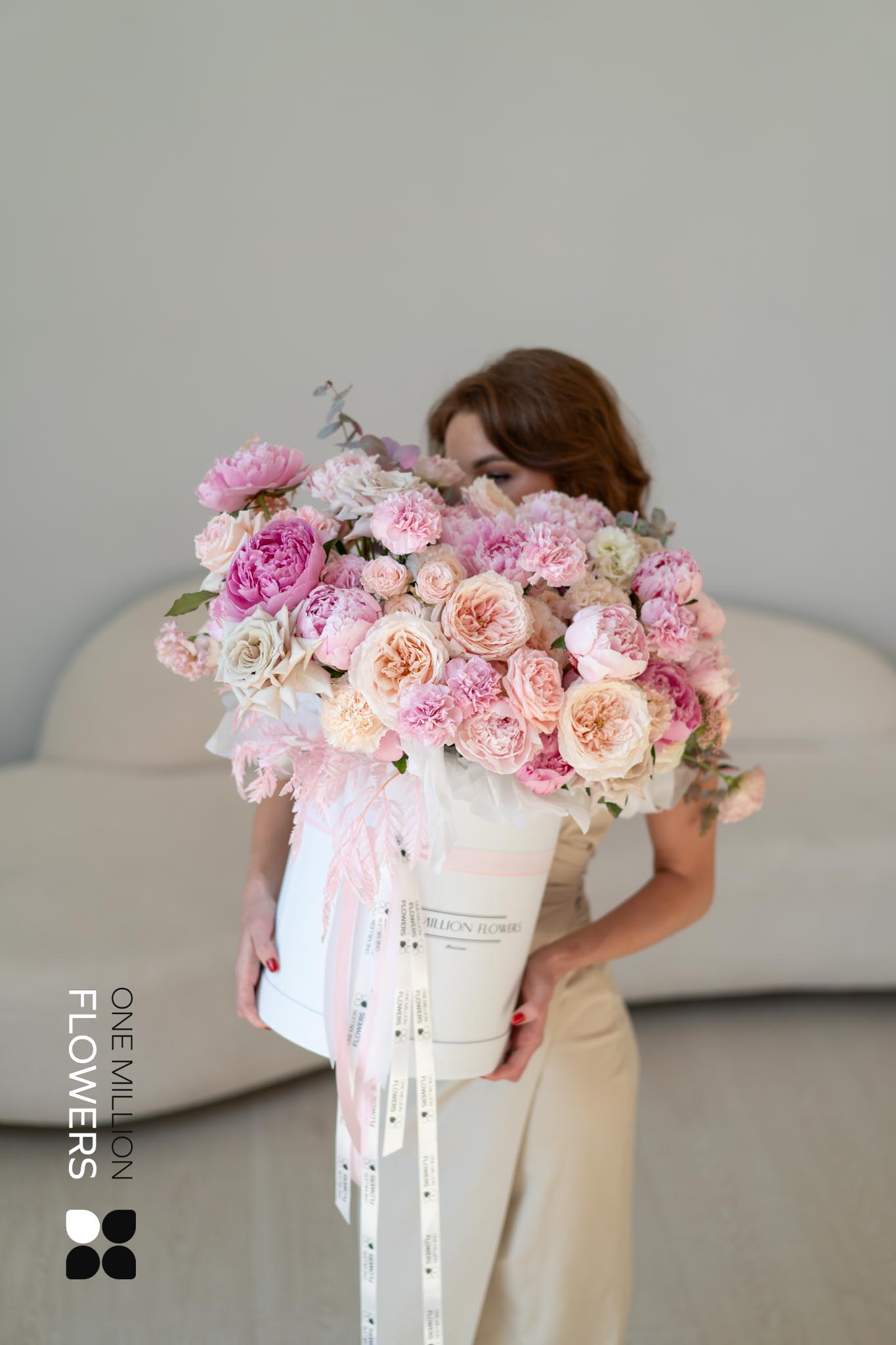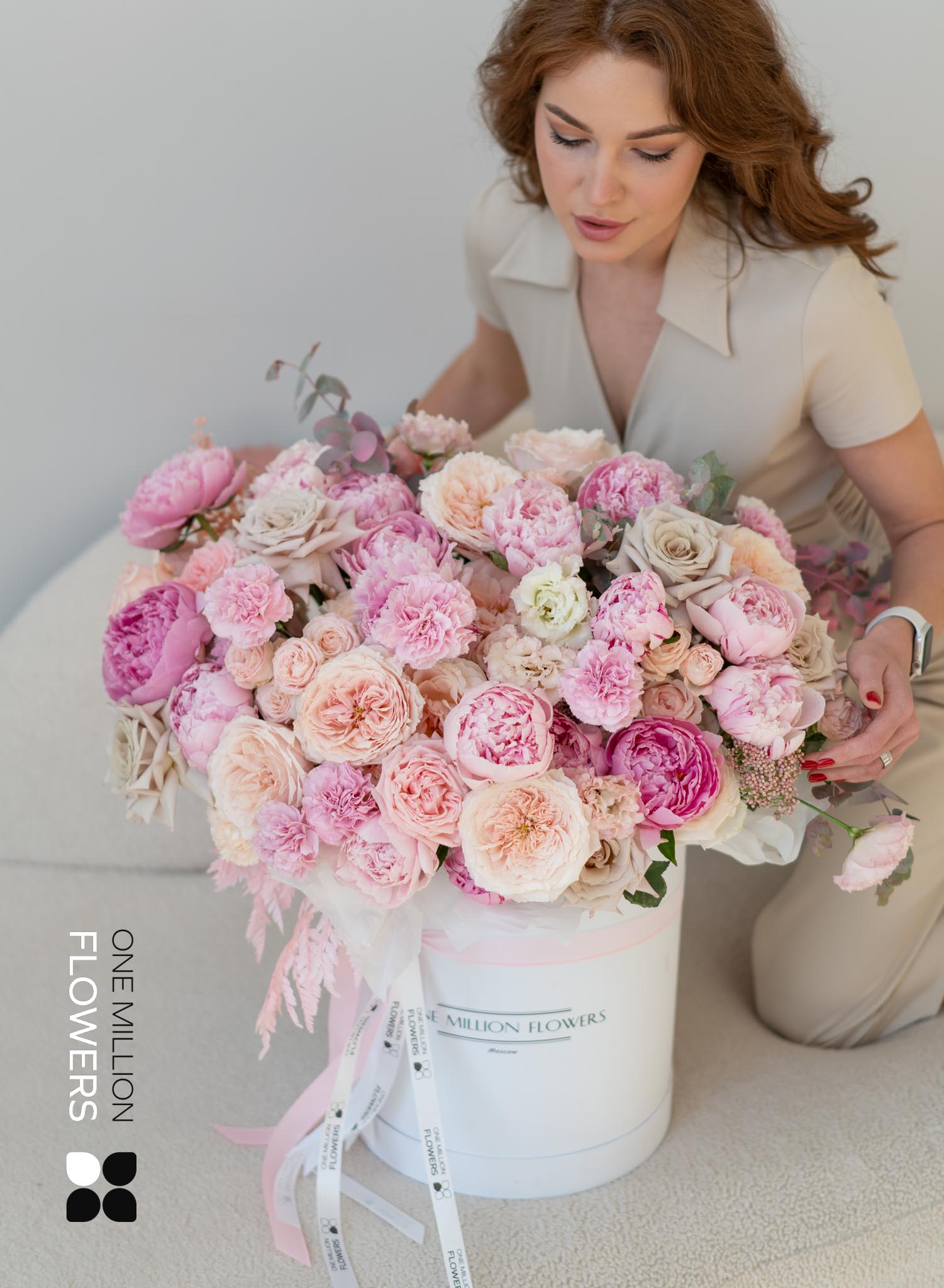 Коробка "Бартон Гранд" White — это изысканная композиция, в которой собраны уникальные цветы: пионовидные розы в белом и кремовом цветах, что придает ей утончённый и неожиданный вид. Пионы символизируют романтику, благосостояние и удачу, и их великолепные, ароматные бутоны нередко ассоциируются с красотой и роскошью. Эти цветы стали особенно популярны на свадебных церемониях, что добавляет им особого шарма.