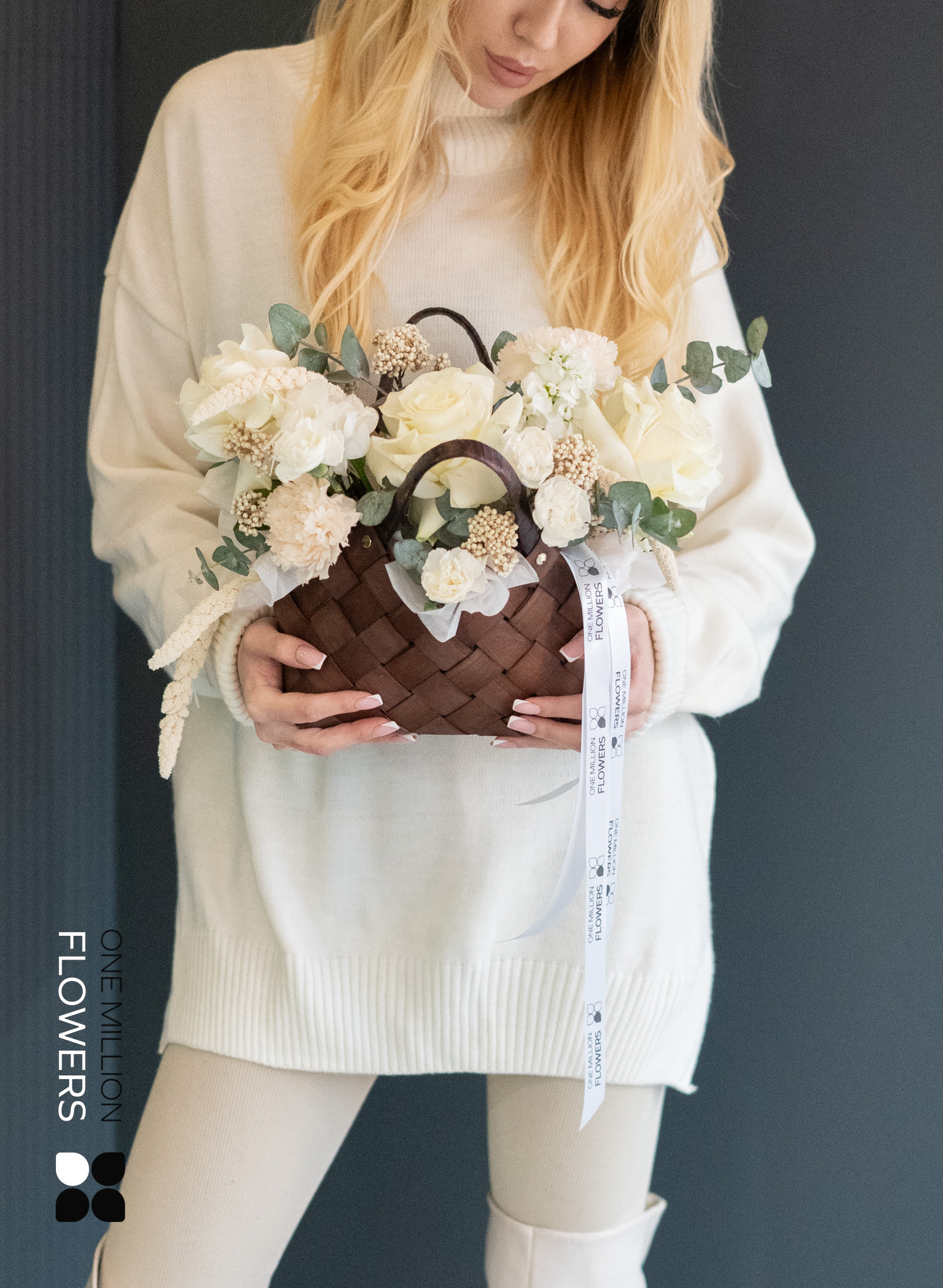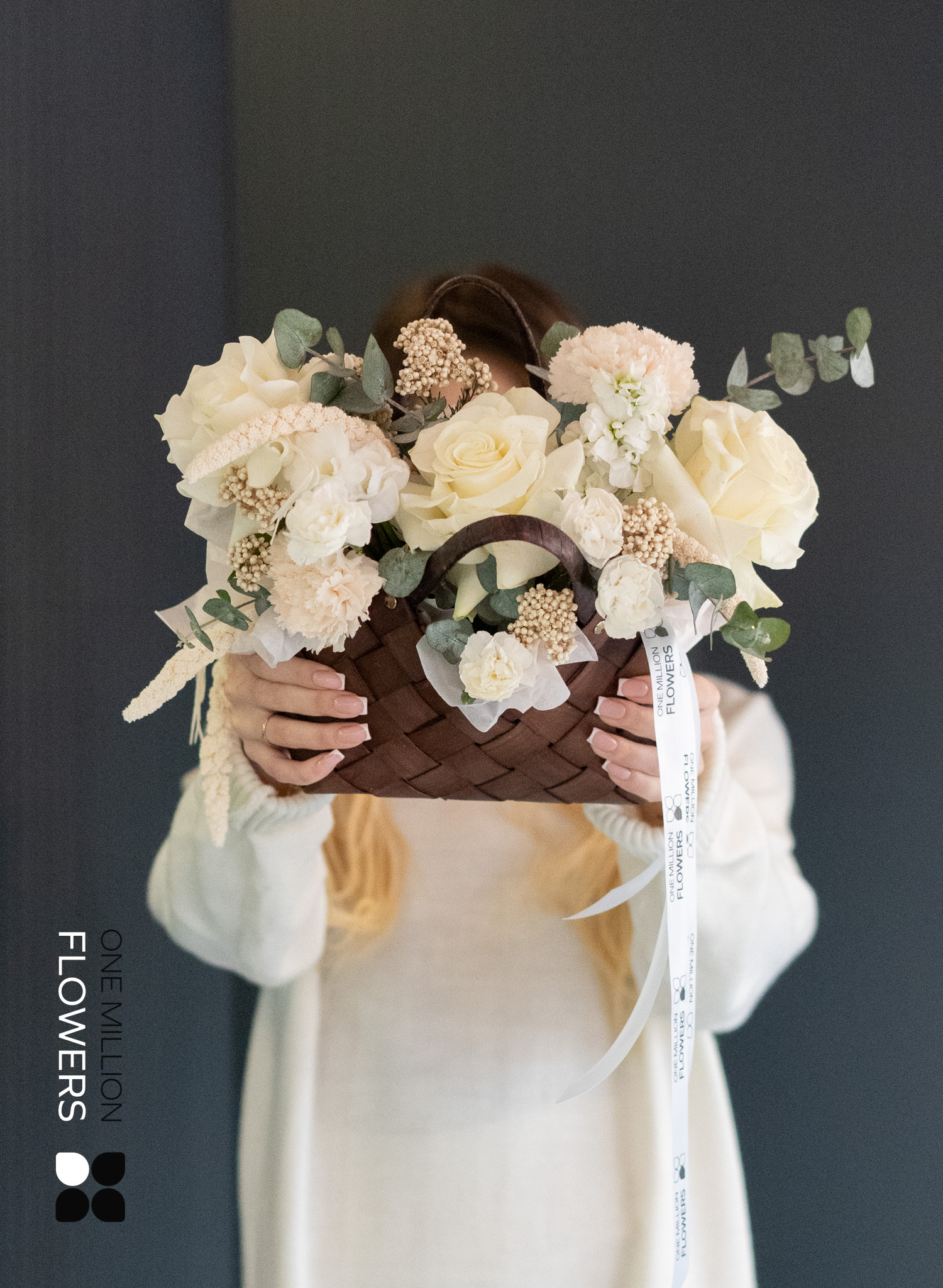 Это гармоничное сочетание различных текстур и оттенков делает корзину универсальным подарком как для торжества, так и для личного пространства.